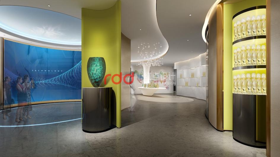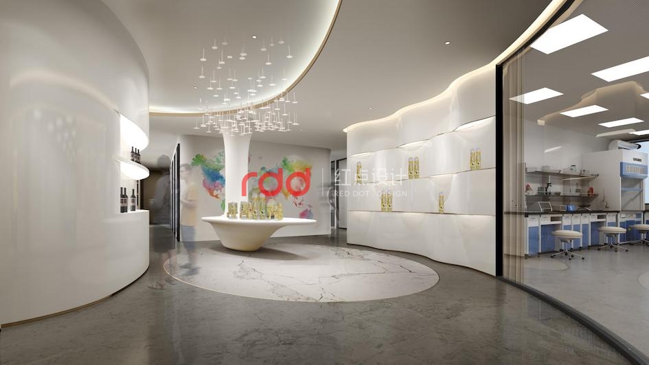 本案是企業(yè)是專注于SOD系列技術(shù)及相關(guān)產(chǎn)品?!癝OD”酶是一種金屬酶,是氧自由基的自然天敵,是生命健康之本。前臺背景墻上發(fā)光金屬logo“SOD”三個字簡單明了。白色的弧形背景墻與弧形前臺相互呼應(yīng)。