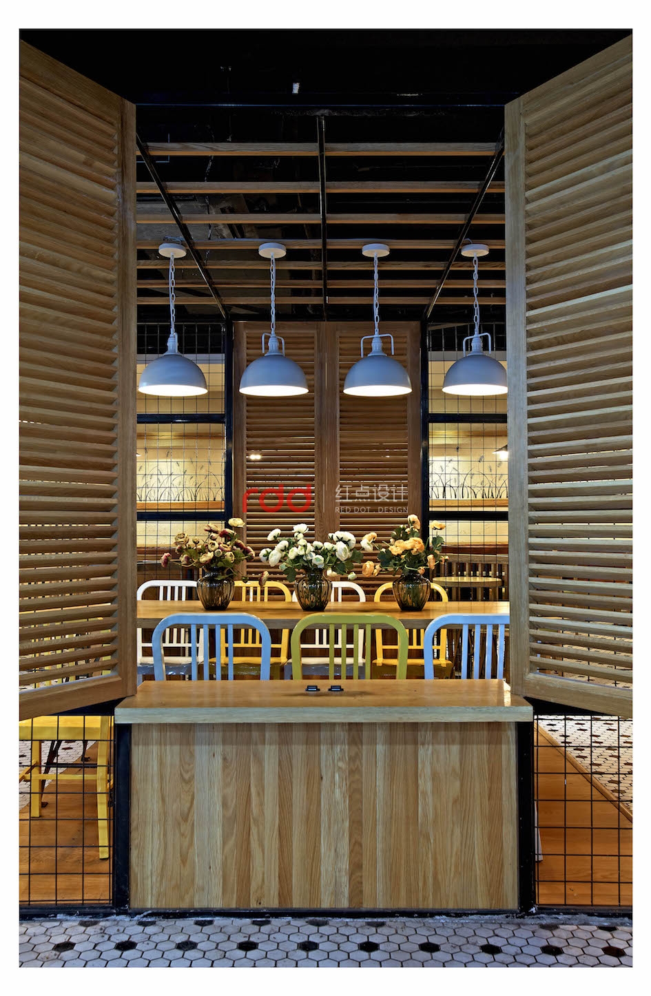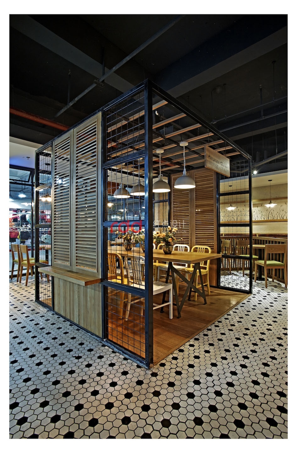 獨(dú)具匠心的空間劃分,大廳以麥色為主基調(diào),橡木板染色,網(wǎng)格鐵藝與橡木柵欄圈出一片靜謐安詳,明亮的燈光瀉落在餐桌的小雛菊上,挪動(dòng)干凈簡(jiǎn)易的座椅,轉(zhuǎn)身推開窗戶,風(fēng)吹麥浪,起起伏伏,甜甜的氣息迎面撲來(lái),在心底吹起一葉屬于回憶的麥片,發(fā)人深省。